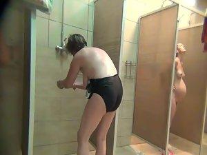 All these fine mature women were taking a shower with or without their swim suits and they were all unaware that a hidden camera is watching their matronly boobs and vaginas. They wash up and rinse off their bodies without sensing anything awkward.